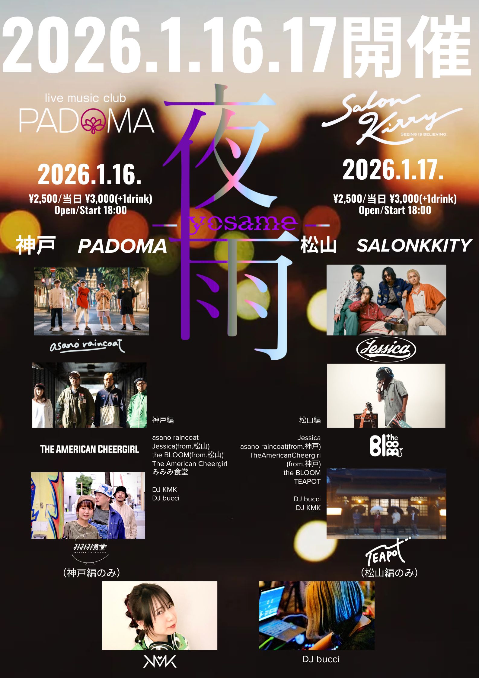 “松山SALONKITTY × 神戸PADOMA 夜雨” Jessica / asano raincoat / The American Cheergirl / TEAPOT / THE BL00M